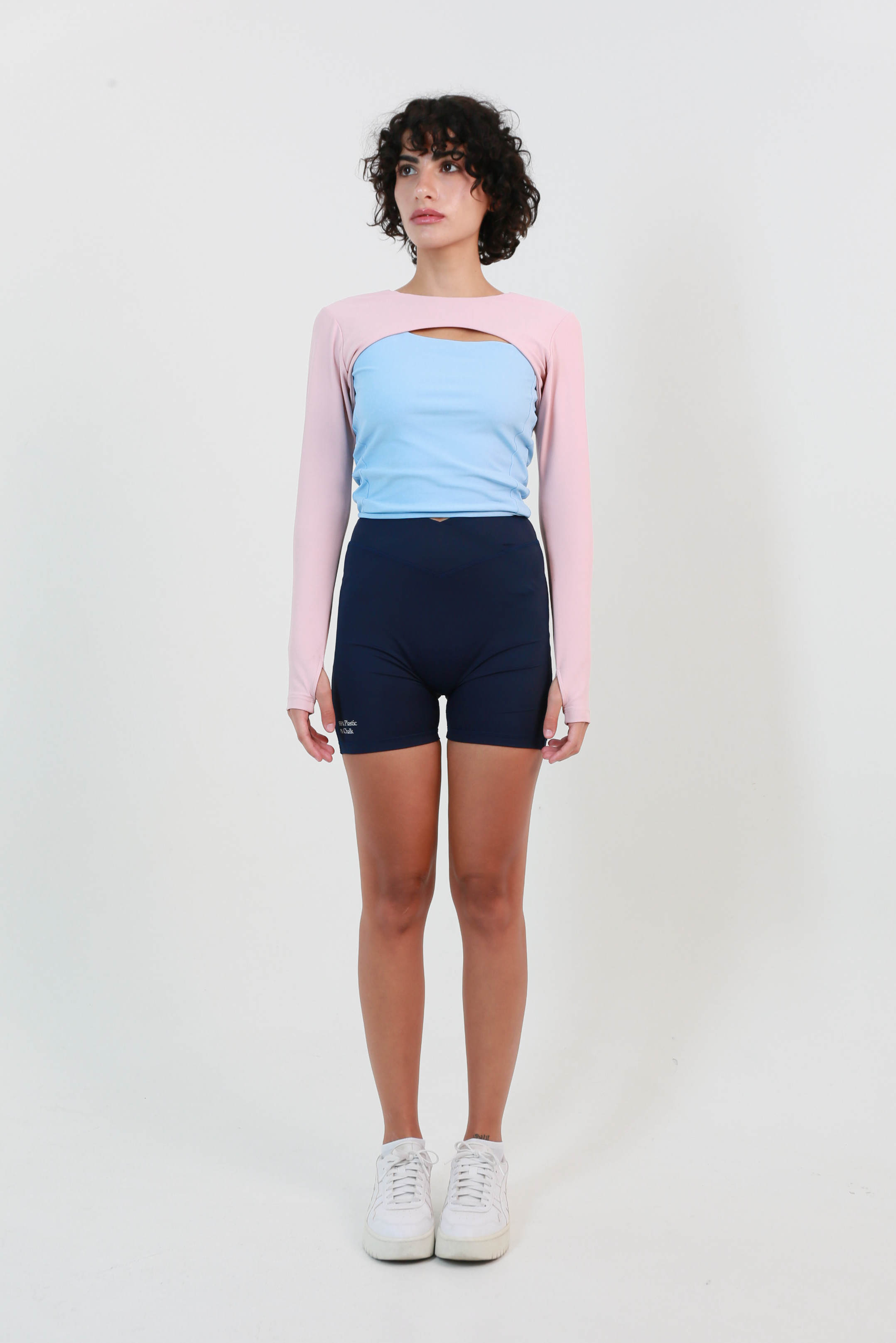 - Features: High-waisted fit, breathable stretch, "99% plastic, 1% chalk" print